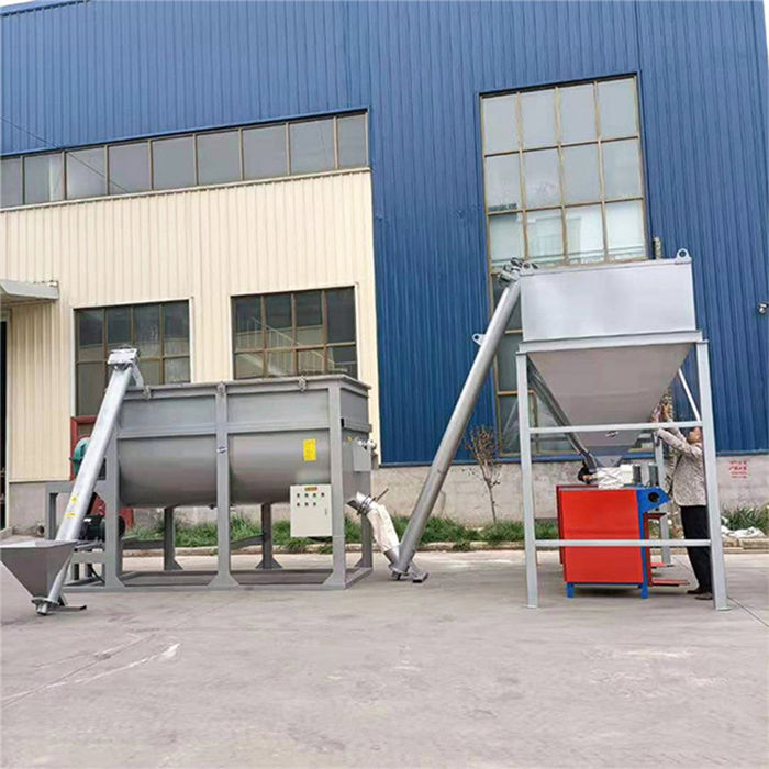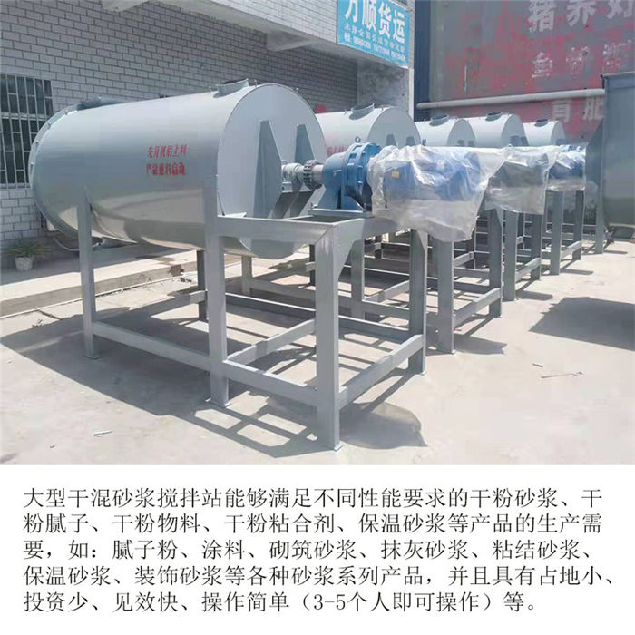 該設備為全自動干粉砂漿攪拌機,整機四角加上料計量,適合多種物料混合的攪拌,設定好斤稱之后,物料由提升機上料,斤稱達到自動停止,然后接著上第二種物料,以此類推,計量準確,省時省力;出料系統設計也是電腦計量裝置,無需人工二次稱重,閥口袋包裝,無需再次封口,出料速度快,4秒一袋,1人即可操作,省時省力;攪拌機機身為臥式U型筒體,內部由內外兩層螺帶交錯布置,攪拌均勻,混合速度快,5至8分鐘即可攪拌均勻,出料可根據不同物料的實際需求定做多個出料口。